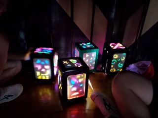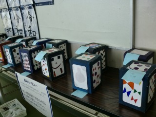 5年生の廊下には、図工の作品が置いてあり、懇談が終わった保護者の方に持って帰っていただいています。「光のハーモニー」という題材の作品で、ステンドグラス風のものです。廊下に置いてあってもそれなりにきれいですが、暗いところでLEDライトを点灯すると、それはそれはきれいな作品です。