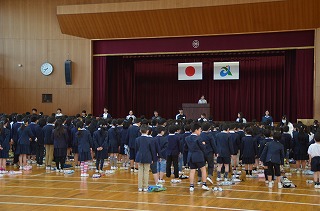 今日の朝礼は、全校がとても静かに体育館に集まることができました。一番最初に体育館に入ってきた1年1組の子たちも、最後のクラスが揃うまで、本当に静かに待つことができました。とても、立派だと感心しました。