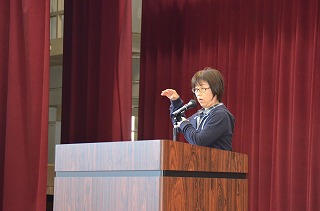 今日は菱田先生から、「習い事」についてのお話を聞きました。先生ご自身が「フラダンス」を習っていて、もう習い始めて7年になるそうです。フラダンスの動きには、手話と同じように一つ一つ意味があることも教えてもらいました。そして、今習い事をしているみんなに、その習い事をとことん突き詰めてやってみると、いろいろなことが見えてくるので頑張って続けてほしいとの言葉がありました。