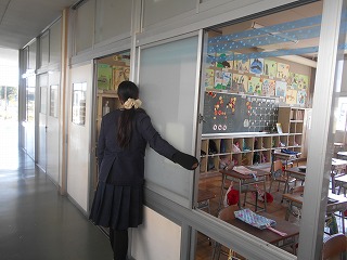 保健委員会では、休み時間に教室や廊下の窓を開けるよう声をかけたり、確認をしたりして「窓開け運動」に定期的に取り組んでいます。