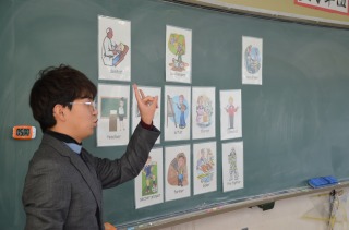 「Main activities」では、ミッシングゲーム、Let's listen、Let's Chant、Activity と続きます。最後のインタビュー活動では、授業を参観しに来ていた先生たちにもインタビューをして、とても授業が盛り上がりました。