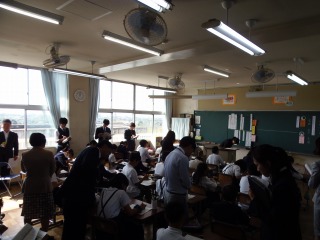1時間目の時間に、学校の状況等を説明する会を行い、2時間目と3時間目を使って全クラスの授業を見て回りました。どのクラスも、たくさんのお客様を目にして、びっくりしたり緊張したりしているようでした。