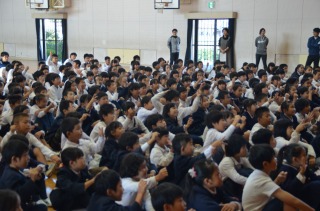 一つ目は埼玉県和光市で起きた、中学生が祖父母を殺傷した事件のことでした。この少年は、警察の取り調べで「学校にどうしても殺したい生徒がいて、事件を起こすと家族に迷惑がかかるので、家族を先に殺そうと思った」と述べているそうです。少年のとった行動は間違っているが、殺したいほどの生徒に何をされていたのでしょう。みんなの中に、友達をからかったり、嫌なことをしたりしている人はいませんか?友達のことをいじって、本人が笑っているからいいと思っている人はいませんか?されている人の気持ちを考えたことがあるでしょうか。絶対に人が嫌がることを言ったり、やったりすることは許されません。笑っているのは、苦しい気持ちをごまかしているだけだと気付きましょう。また、友達から嫌なことをされていると思っている人は、すぐに先生に相談してください。間違った解決の方法を選ぶことがないように。