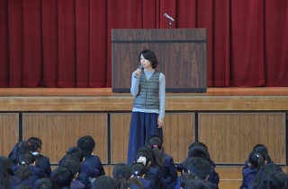 あいさつの後、校長先生からお話がありました。クリスマス、年越し、お正月と季節の行事がたくさんあり、子どもたちもとても楽しみにしているお休みです。そんなお休みの過ごし方について話されました。最後に1月7日(月)に、みんな元気で笑顔で会うことを約束しました。