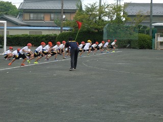 「よーい、ドン!」と旗が振り上げられると、子どもたちはゴールを目指して、元気に走っていきました。