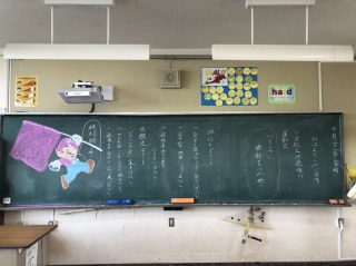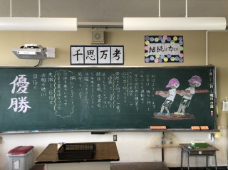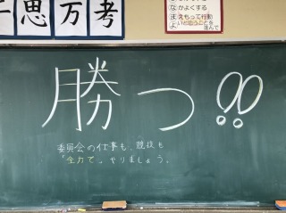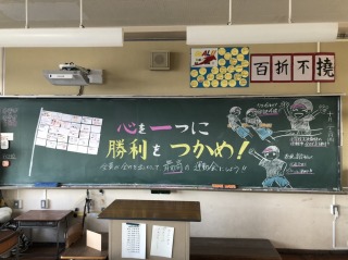 子どもたちが登校する前に、高学年の各教室を覗くと、黒板に担任からのメッセージがかかれていました。きっと5・6年生は、立派に運動会を創り上げてくれる予感がしました。