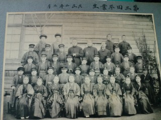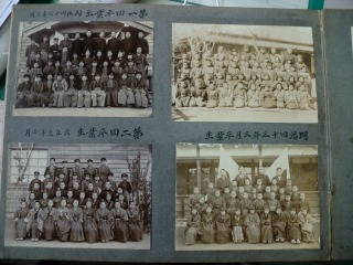 ある程度処分もされているようで、あまり力になれそうなものはないように思って探していくと、いかにも古い今にも壊れそうなアルバムがありました。そっとアルバムをめくってみると、それは草平尋常小学校の卒業生第1回生から30回生までの写真が、きちんと貼ってあるものでした。第1回生は、明治44年3月と記されています。1911年、今から107年前の写真です。表紙裏には校舎の全景もあります。色は多少劣化していますが、子どもたちの顔はしっかりと分かります。