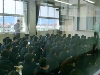 三連休明けの今日は、朝礼がありませんでした。しかし、南館二階の視聴覚室に続々と集まっていく子どもたちがいます。5年生と6年生の児童でした。