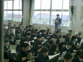 その百人一首大会の説明をするために、高学年が視聴覚室に集められたのです。また、6年生の卒業まであとわずかとなってきました。卒業式に向けて、卒業していく6年生にも見送る5年生にも、それぞれの立場での自覚を促す場にもなっています。