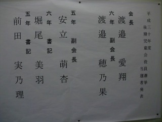 当選した新役員の子どもたちには、公約を果たすべく協力して、よりよい草平小学校を作っていってくれることを期待しています。残念ながら落選した子どもたちも、立場を変えて草平小学校を支えていってくれると信じています。すべての経験が無駄にはならないことを学ぶチャンスです。