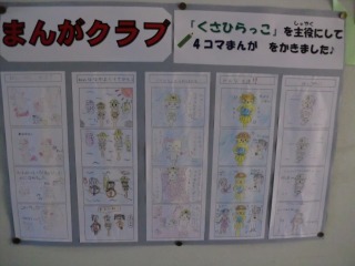 また、まんがクラブが描いた、草平小のオリジナルキャラクター『くさひラッコ』の4コマ漫画も掲示されています。どの作品もほのぼのとした内容になっています。