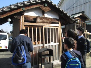 学校を出発し、最寄り駅の六輪駅まで1.8Kmの道のりを歩きましたが、さすがに6年生と4年生です。予定よりも早く駅に到着しました。六輪駅では、切符の買い方、時刻表の見方、乗車ホームの確認をして名鉄電車に乗りました。町方駅の次の津島駅で降ります。津島駅では、地図を見ながら津島神社までの道を確認し、出発!