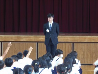 校長先生から、今日から草平小学校に教育実習にきた2人の先生の紹介がありました。