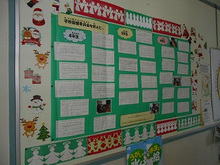 12月7日に、「自分の生活習慣を見直そう」というテーマで学校保健委員会を行いました。1階の渡りの掲示板に、その時の振り返りの時間に子どもたちが書いてくれた感想を掲示してあります。