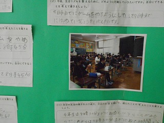 自分の生活の様子を正直に振り返り、どうしたら改善することができるかについて書いている児童が多く、感心しました。