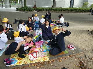 昼食はちょっと風が冷たい白川公園でいただきました。みんなでお弁当を楽しそうに食べる姿はやはりいいですね。