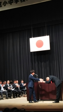 津島市を除く海部地区59校の組織です。29年度の渡辺会長(佐織西中)から30年度の南出会長(蟹江北中)に無事にバトンタッチされました。