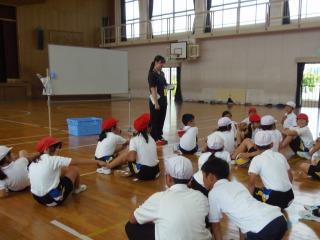 今日は、教育実習生の冨田先生が4年1組で、体育の研究授業を行いました。