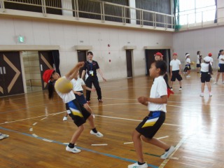 昨日の授業では、なかなかパスが続かず、雰囲気が悪くなってしまったグループもあったそうです。しかし、今日は先生からのアドバイスや友だちの意見からヒントを得て、パスが続き、どのグループにも笑顔がいっぱい広がりました。
