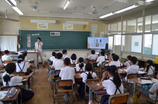 学校の現況報告のあと、2・3時間目は各クラスの授業を見て回りました。どのクラスも教室環境が整えられ、板書の字がとてもきれいなこともお褒めいただきました。