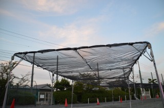 低学年の下校が終わったくらいから、手の空いた職員でテントの設営から始めました。黙々と作業を行いました。暑さ対策のため、今年度から行う寒冷紗を付ける作業は、だんだんコツやよい方法を見つけ出し、工夫して作業を進めました。