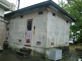 2つ目が給食室の南にある貯水槽とプロパンガスが収めてある倉庫