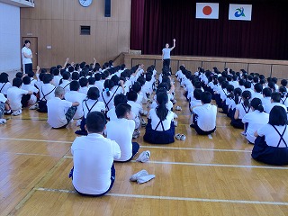 朝一番に、体育館では4~6年生対象に生徒指導の先生からのお話がありました。20日の臨時朝礼や先日学校からのメールでも注意喚起をお願いしましたが、スマホやコンピュータなどSNSによる動画の取り扱いについてです。