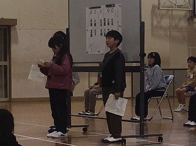 来年度の前期児童会役員の選挙を行いました。立候補者および推薦責任者が、みんなの前でスピーチをしました。よりよい学校にしていくための意気込みを感じられました。立派な姿です。