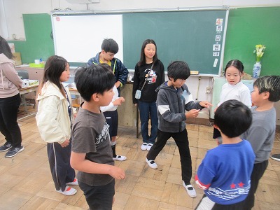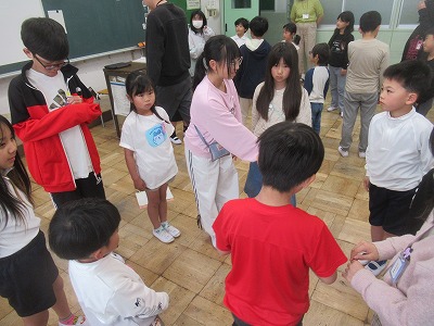 今日は、初回の顔合わせなので、自己紹介をかねた『バースデーチェーンゲーム』を行いました。6年生がやさしく声をかけ、みんなで楽しい時間をつくってくれていました。
