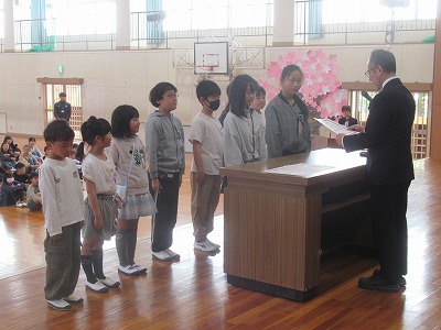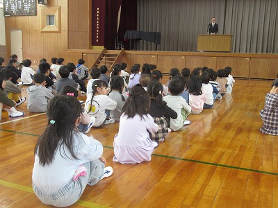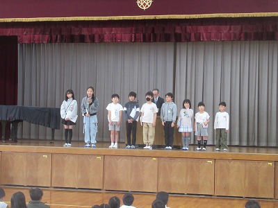 校長先生からのお話の後、担任の先生の発表がありました。新しい気持ちで今年度をスタートしていく意気込みを子どもたちの表情から感じ取れました。また、校歌をすばらしい歌声で1年生に披露することができました。明日からも元気いっぱいに学校生活をすごしていきましょう。