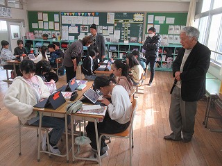 また、集会の部では、全校児童といっしょに講師をお招きし、「みんなのコミュニケーション入門」の演題でお話をききました。