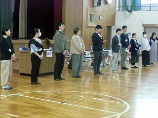 テーマは『話して 聞いて 笑顔いっぱい』です。会議の部では、1年間立北小で行ってきた、コミュニケーション向上を目指した『立北ハッピータイム』の活動について報告をし、学校医とPTAで意見交換をしました。