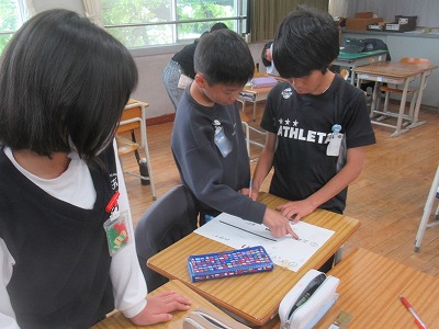 日常場面に「分ける」という場面があり、具体物を操作していくことが、役に立つと思える実感をもった学びにつながります。今日は、12このイチゴを3人で同じ数ずつ分ける場面で考えました。数図ブロックを操作をしていくうちに、きれいにならべたブロックの様子から、全体が12なので、3×▢=12(だから▢=4)というかけ算のブラックボックスの考えにたどり着きました。分ける場合は、わり算(12÷3)を使うことを知り、九九を使った解き方のコツに触れることができたようでした。これからの学びが楽しみです。