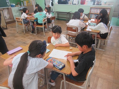 1年生のお名前・すきなもの紹介では、立派に発表することができ、クイズでは盛り上がることができ楽しそうな様子でした。会の後で、2年生の教室に受け取った種のお礼を伝えていました。種を育てて、きれいなアサガオの花が咲くとよいですね!