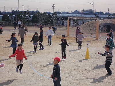 短縄跳びは、長縄跳びと違い、個人での練習が多くなります。