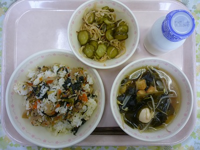 れんこん入り中華風まぜごはん 牛乳 中華風はりはり漬け