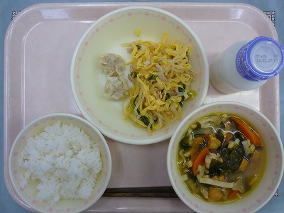 ごはん 牛乳 しゅうまい バンサンスー わかめスープ