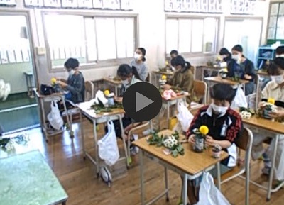 6年生は4時間目に生け花の授業を行いました。