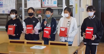 本日、リモート朝礼で児童会役員さんが赤い羽根共同募金について連絡をしてくれました。