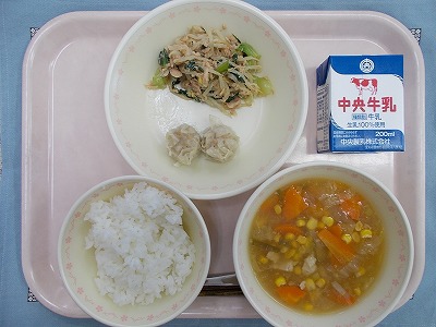 ごはん 牛乳 しゅうまい チンゲン菜の中華和え
