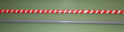 「なんということでしょう。何の変哲もないパイプ(下)が匠の手にかかり、紅白のカラフルな棒に生まれ変わりました!」