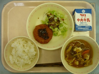 ごはん 牛乳 里芋のコロッケ ボイルキャベツ 豚汁