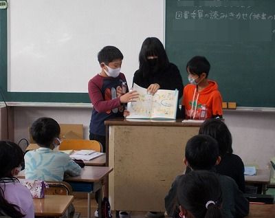 立北小「読書週間」の行事で、1~3年生の教室へ、