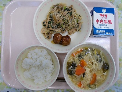 ごはん 牛乳 肉団子 野菜たっぷりビーフン 玉子スープ