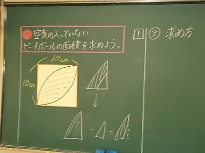 6年生は算数の時間に、上の図形の面積を求めていました。