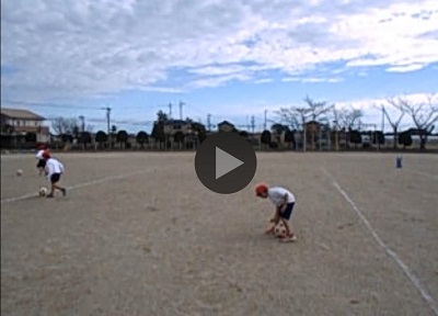 初めてのドリブル練習でしたが、蹴る強さを調整しながら上手に行う子どもたちの姿が見られました。