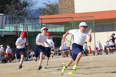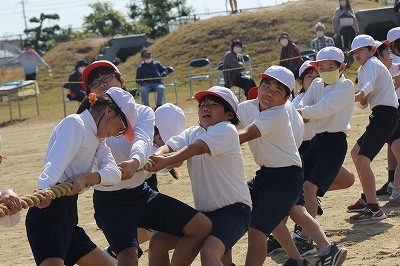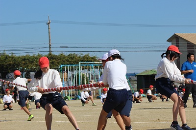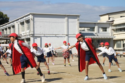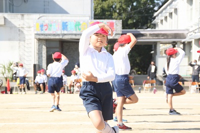 新型コロナウイルス感染症の感染拡大防止のため、2週間延期した今年度の運動会が、秋晴れのさわやかな天候のなか本日開催することができました。結果は「赤組」の勝利でしたが、どの競技も僅差で惜敗が多く接戦でした。参加した子どもたちは、練習の成果を発揮し精いっぱい取り組みました。表現では全校でダンスを披露し、見ごたえある素晴らしい演技でした。