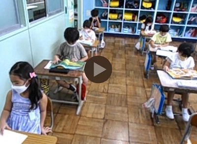1年生の子どもたちは立北タイム(8:20~8:30)の時間に国語のプリントに取り組んでいました。