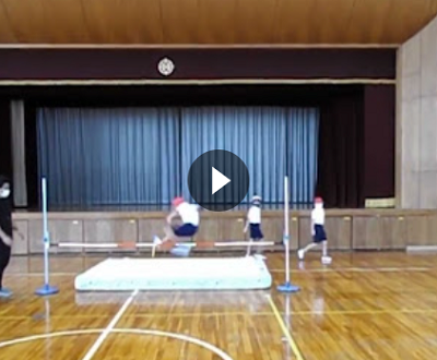 5年生の子どもたちが体育館で高跳びの授業をしていました。