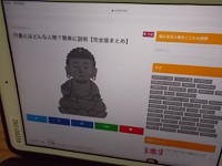 今日の課題は「大仏づくりはどんなようすで、どんな人々がかつやくしたのか?」でした。子どもたちはタブレットを使って行基について調べ、ワークシートに自分が調べたことをまとめていました。